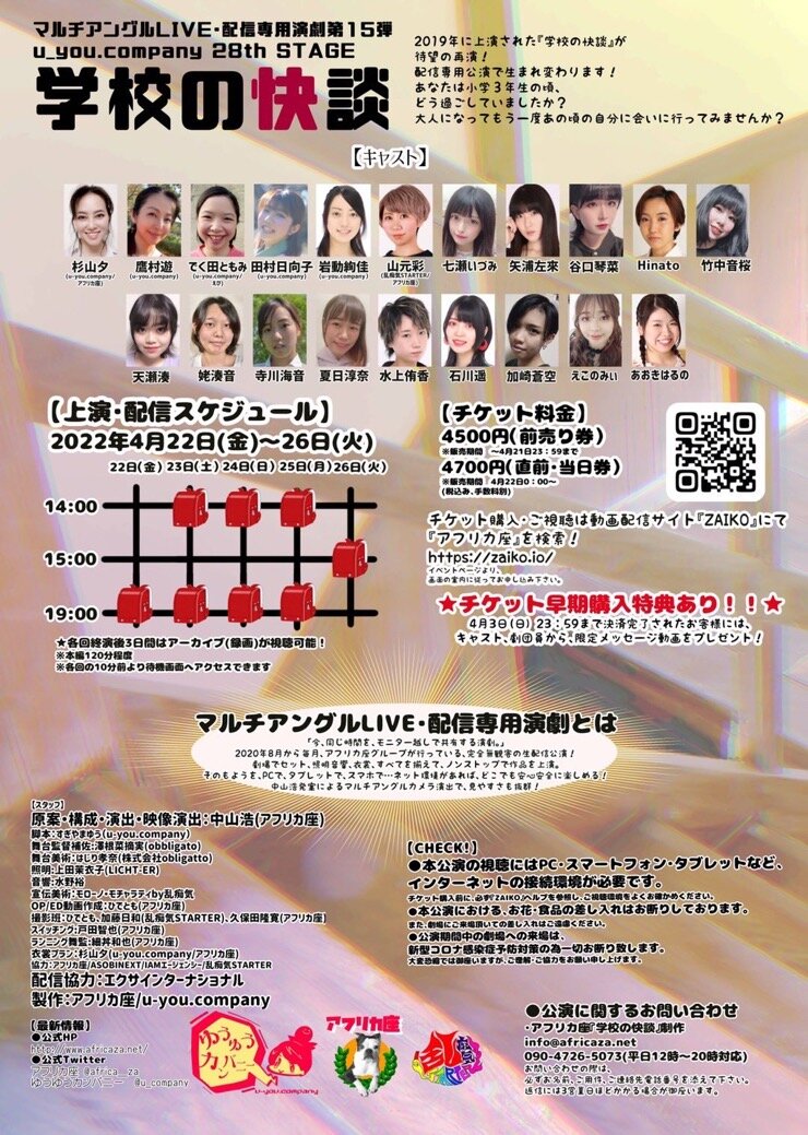 劇団アフリカ座「u-you.company 28th STAGE 」『学校の快談』の配信が決定。